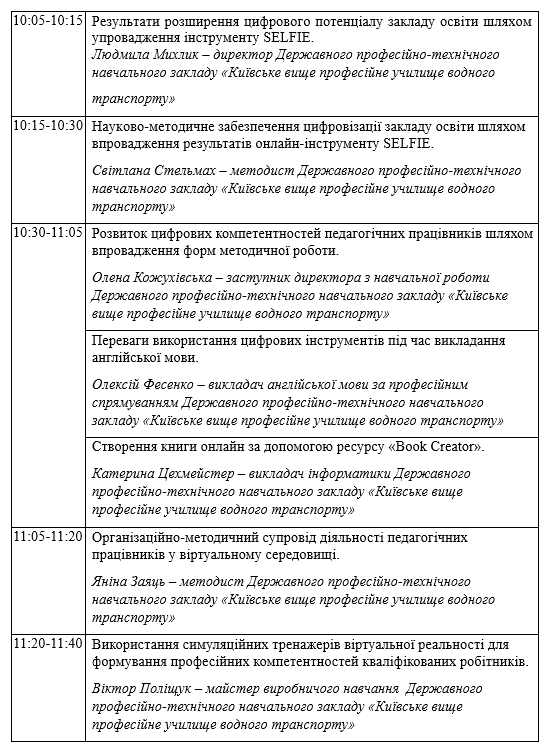 І «Результати розширення цифрового потенціалу закладу освіти шляхом упровадження інструменту SELFIE» – Людмила Михлик – директор Державного професійно-технічного навчального закладу «Київське вище професійне училище водного транспорту» ПРЕЗЕНТАЦІЯ