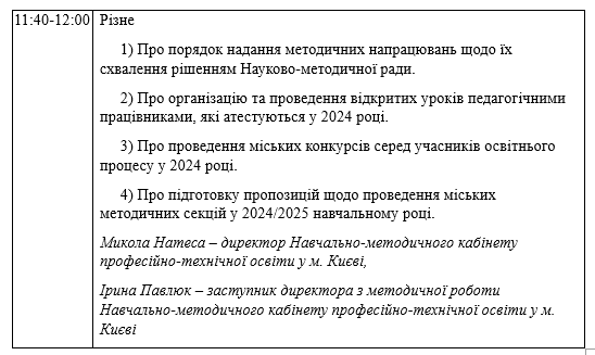 міської методичної секції методистів закладів професійної (професійно-технічної) освіти м. Києва