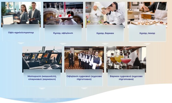 - Досвідчені педагогічні працівники відкриють учням секрети технічного обслуговування суден, керування, безпеку та живучість судна, поділяться досвідом приготування широкого асортименту страв української та європейської кухні, а виробнича практика на підприємстві закріпить отримані знання і навички, надасть можливість отримання швидкого додаткового заробітку до щомісячної стипендії і можливість майбутнього працевлаштування.