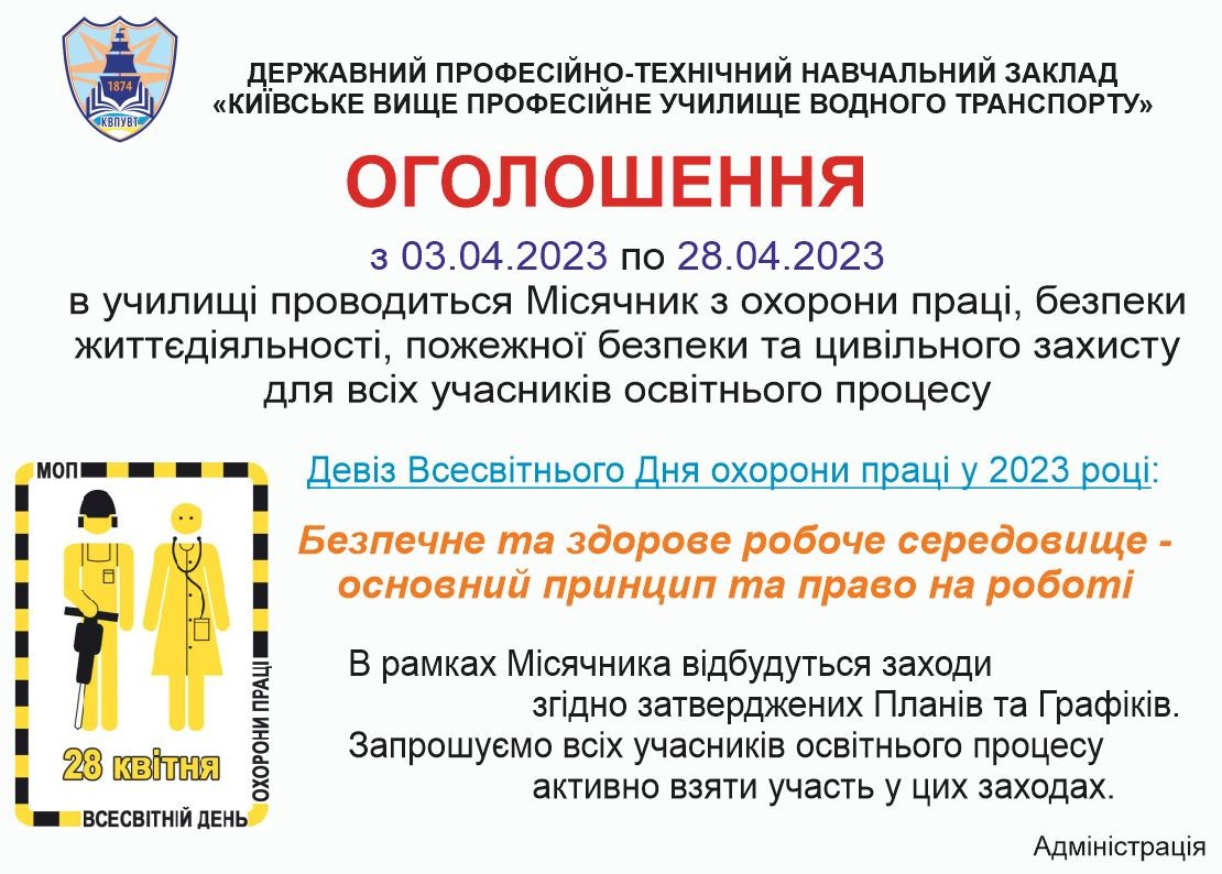 Заходи 05.04.2023 План заходів із відзначення Всесвітнього дня охорони праці 28 квітня 2023 року План заходів