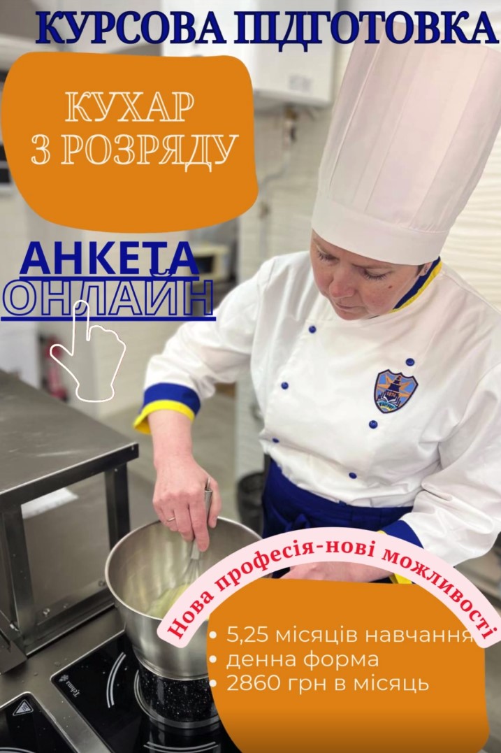 Заповнюй дану анкету, та стань на крок ближче до омріяної професії КУХАР (3 розряд)!
