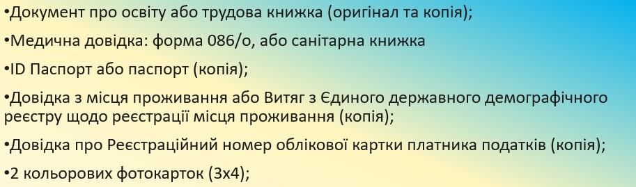 Для зарахування на навчання зберіть і подайте документи в навчальну частину (пн-пт 9:00-16:30):