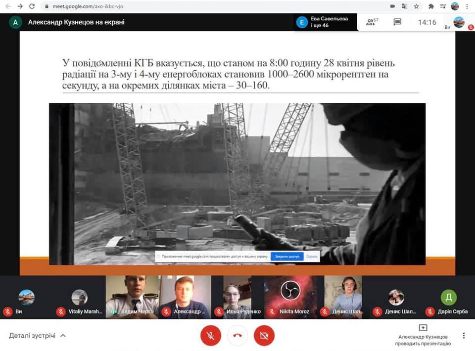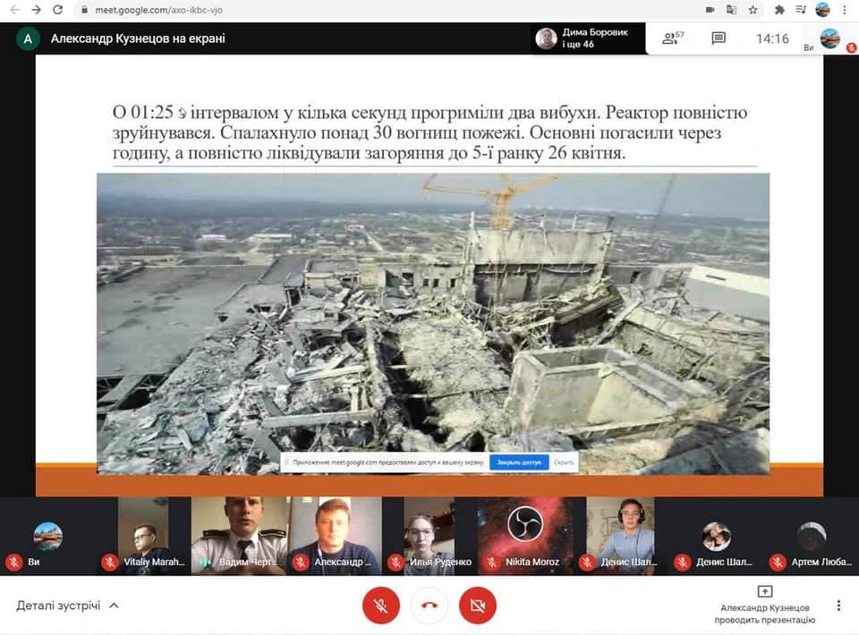 26 квітня 2021 року у ДПТНЗ «Київське вище професійне училище водного транспорту» пройшов онлайн захід «Чорнобиль: події та уроки» з переглядом відеофільму «Чорнобиль. Моя зміна».