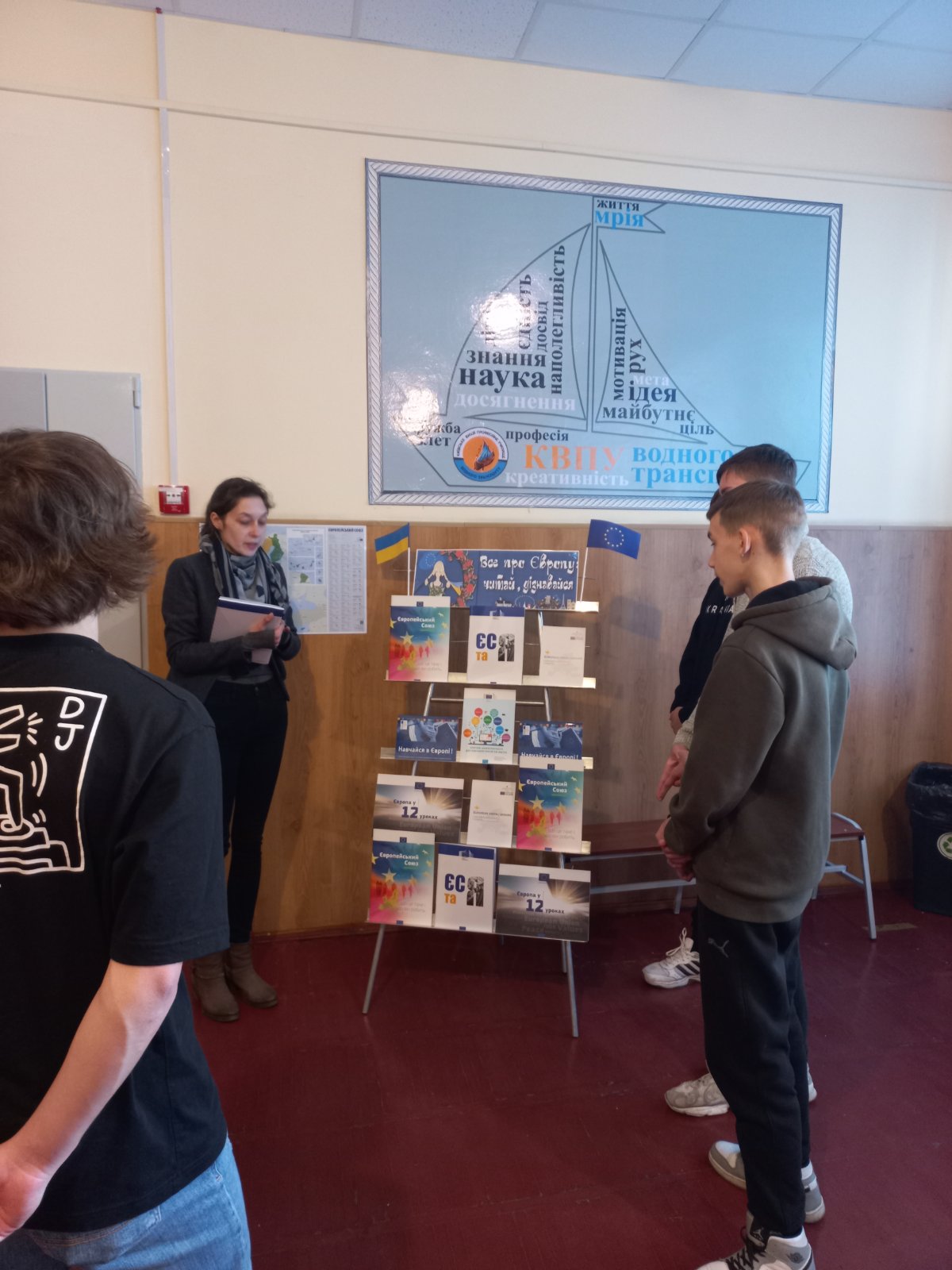 До цієї події в приміщенні ДПТНЗ “КВПУВТ” була оформлена виставка “Все про Європу: читай, дізнавайся”, матеріали для якої надані Представництвом Європейського Союзу в Україні.