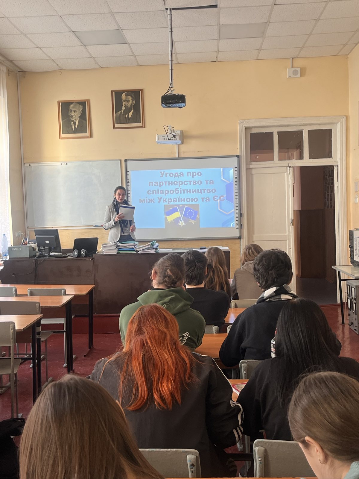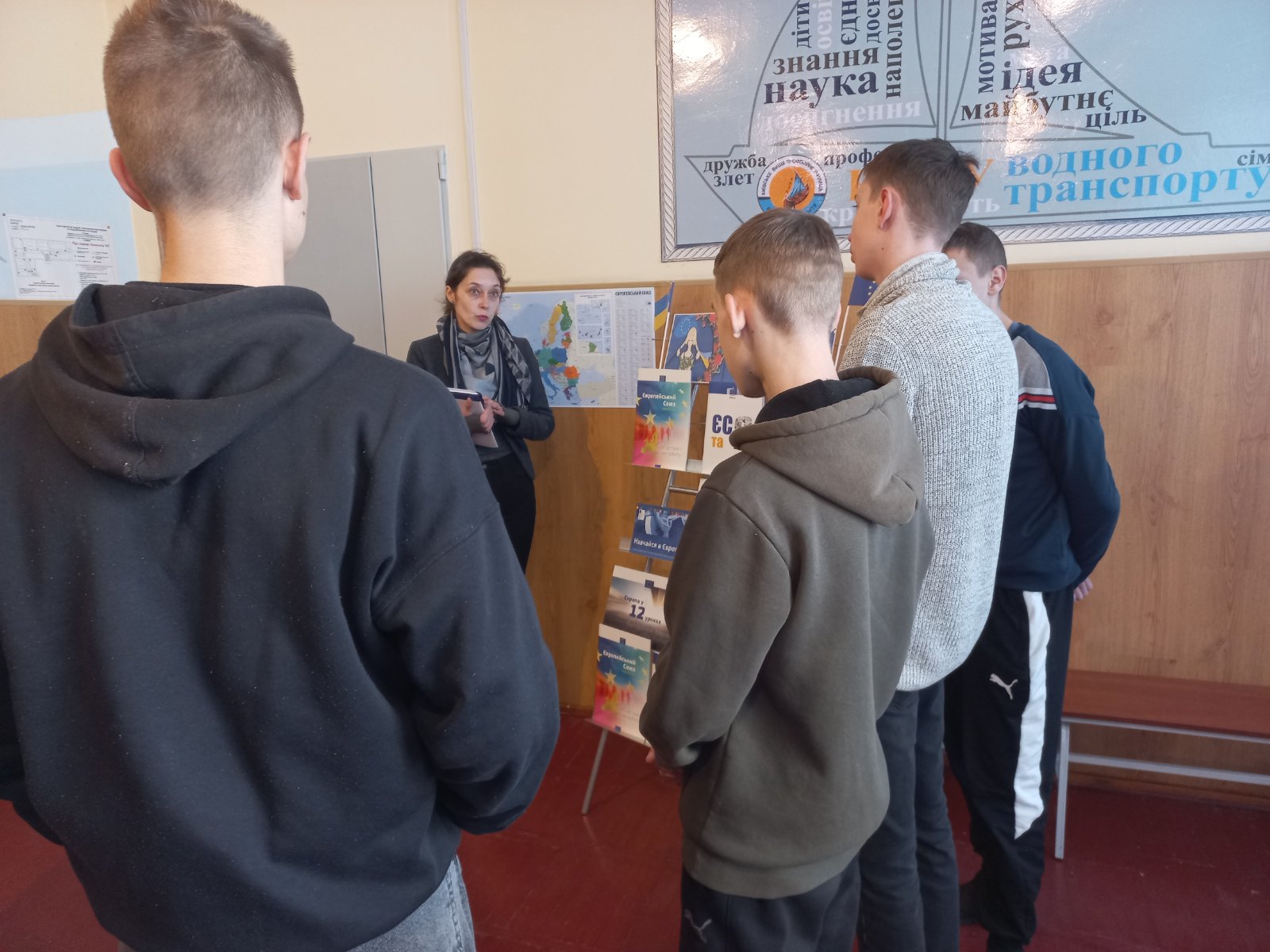 Під час заходу здобувачі освіти ознайомилися з короткими відомостями про ЄС, про представництво ЄС в Україні, останні події щодо рішення Європейської Ради щодо початку переговорів про вступ до ЄС з Україною та Молдовою.