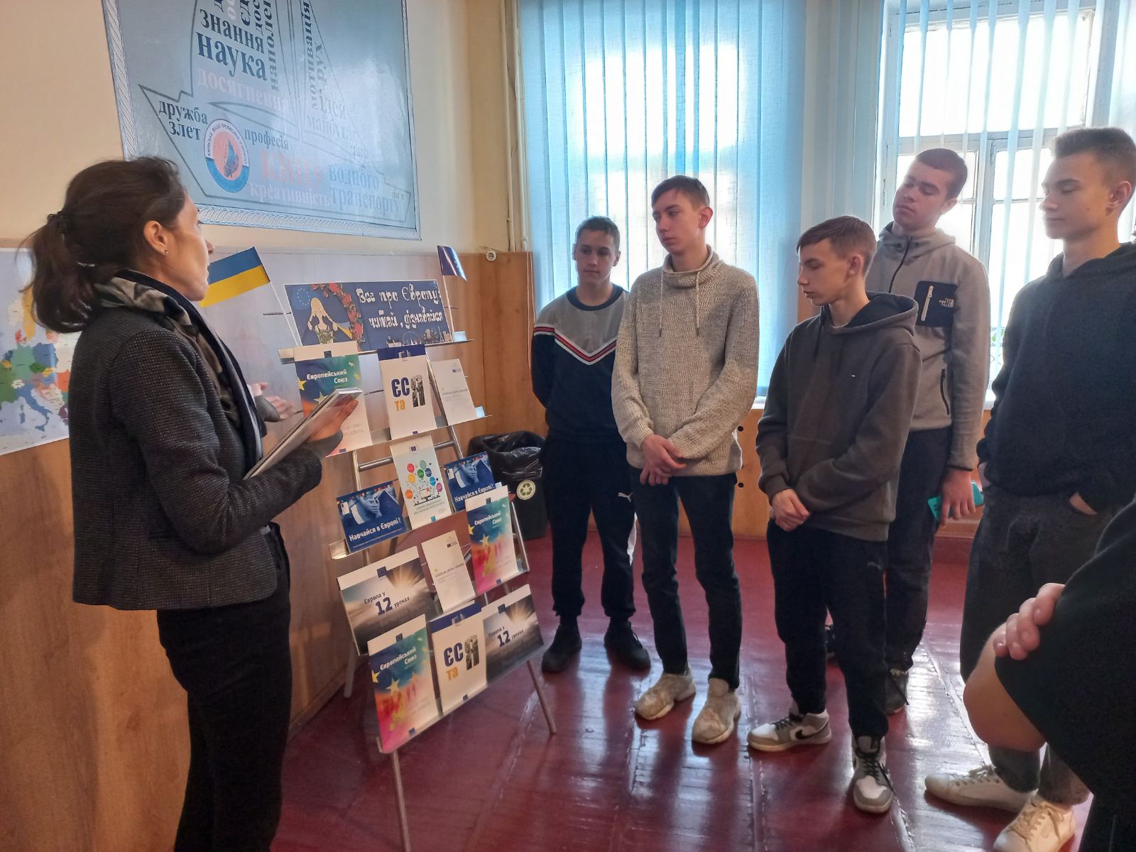 З метою розкрити роль книжок в особистісному розвитку здобувачів освіти, пізнання для себе нового; ознайомлення з сучасними українськими авторами, 22 березня 2023 р. для здобувачів освіти групи П-12 завідувачкою бібліотеки ДПТНЗ «Київське вище професійне училище водного транспорту» Я. Фадькіною був проведений бібліотечний урок “Світ книжок”. На зустрічі обговорили силу книги, як якісна література впливає на особистісний успіх в житті. Адже під час читання активізуються одразу 17 ділянок головного мозку, стимулюється розумова діяльність, покращується пам’ять, розширюється словниковий запас, розвиваються соціальні навички.