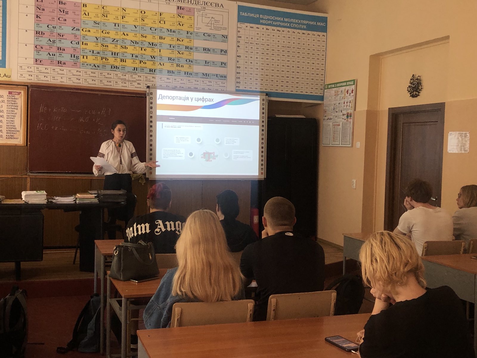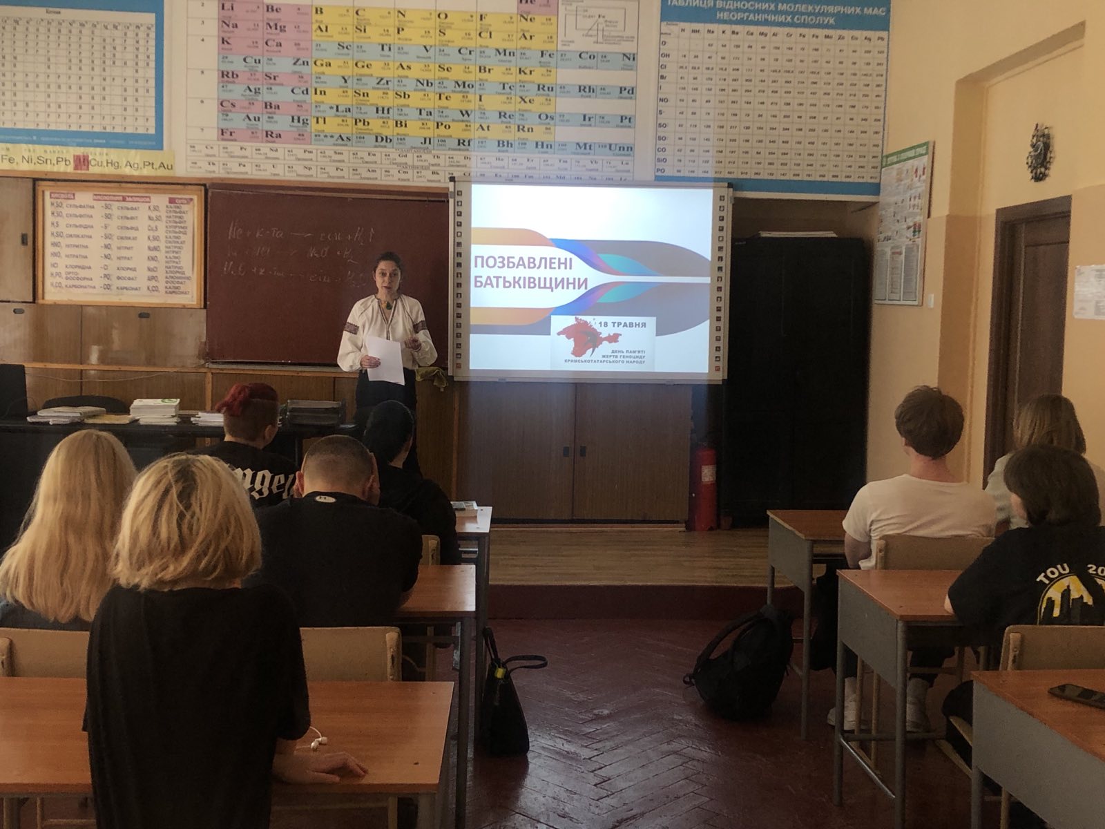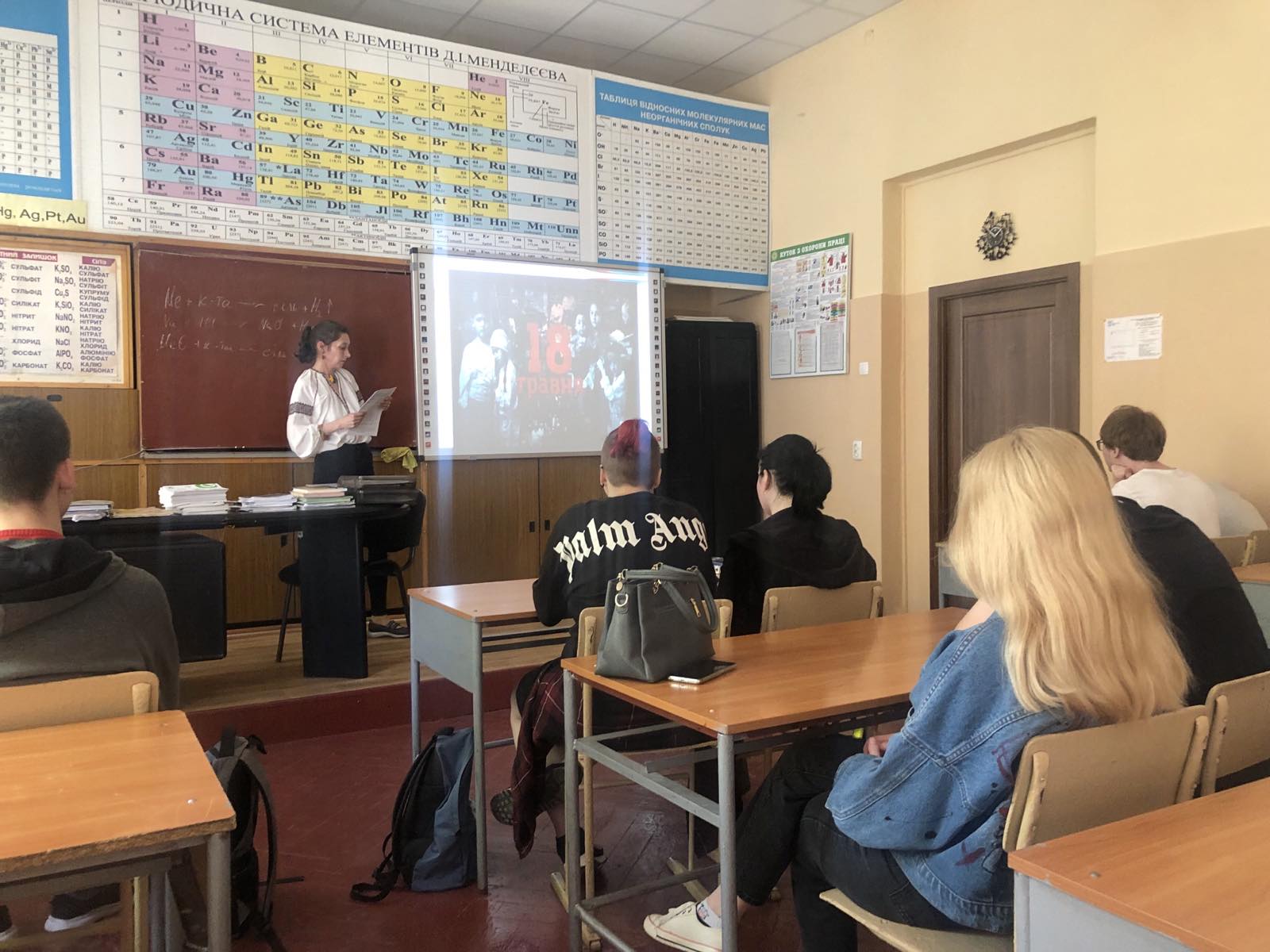 До цієї події завідувачкою бібліотекою ДПТНЗ “КВПУВТ” Фадькіною Я.В. проведена хвилина пам’яті “Позбавлені Батьківщини” для здобувачів освіти груп П-23 і П-24.