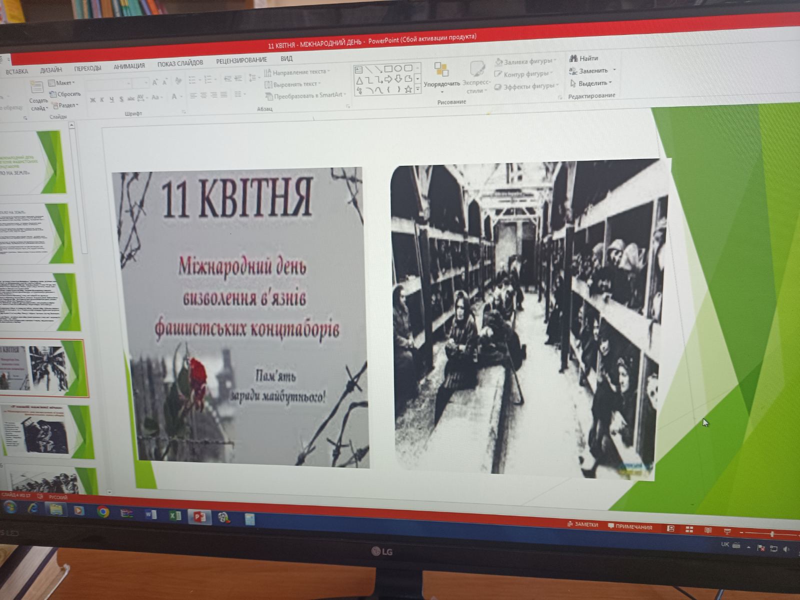 - Бібліотечний урок: 11 квітня – Міжнародний День визволення в’язнів фашистських концтаборів