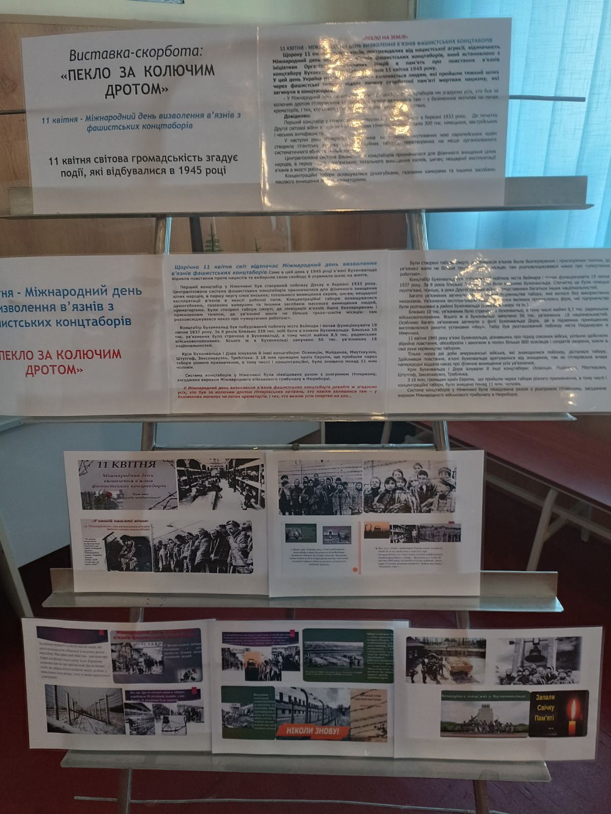 - Бібліотечна виставка-пам’ять: 11 квітня, щороку, світ відзначає Міжнародний день визволення в’язнів нацистських концтаборів. Саме цього дня 1945 року в’язні Бухенвальда підняли повстання, що стало одним із символів боротьби за свободу та людську гідність.