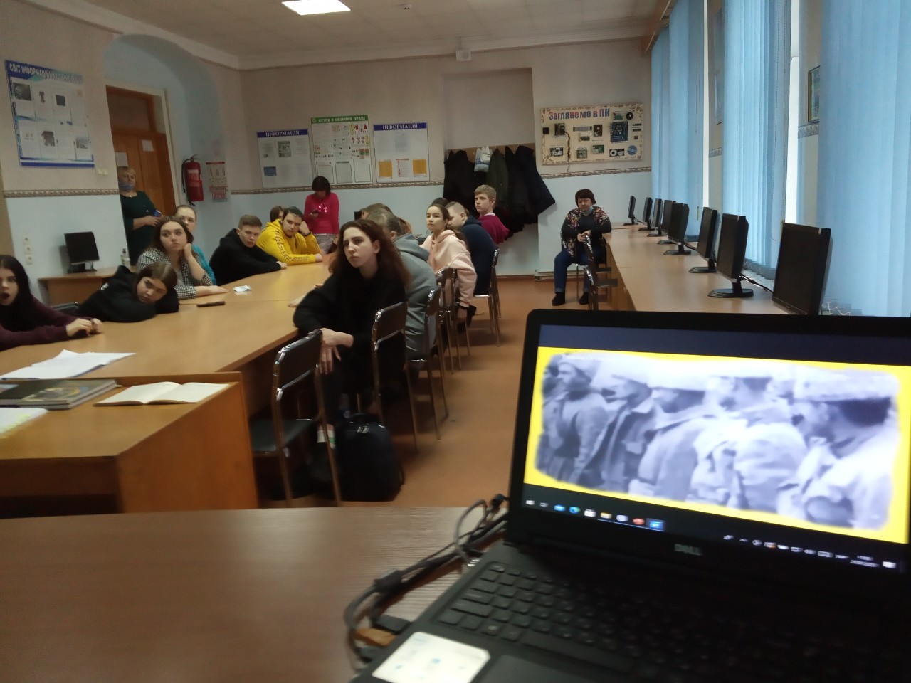 Геноцид українського народу” провели для здобувачів освіти групи П-14 завідувач бібліотекою Василець Н.Г. та бібліотекар училища Русецька Н.В. Вони розповіли присутнім про трагічні сторінки минулого нашої країни, ознайомили з тематичною літературою та разом із учнями переглянули відеохроніки та презентацію.