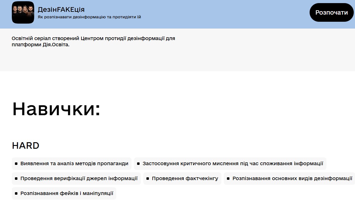 Міністерством цифрової трансформації України спільно з Центром протидії дезінформації при Раді національної безпеки і оборони України розроблено освітній серіал «ДезінFAKEкція»