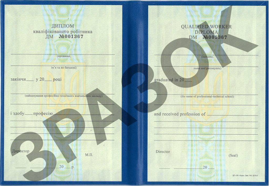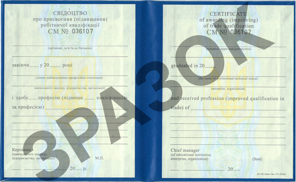 Свідоцтво про присвоєння (підвищення) робітничої кваліфікації, для випускників,