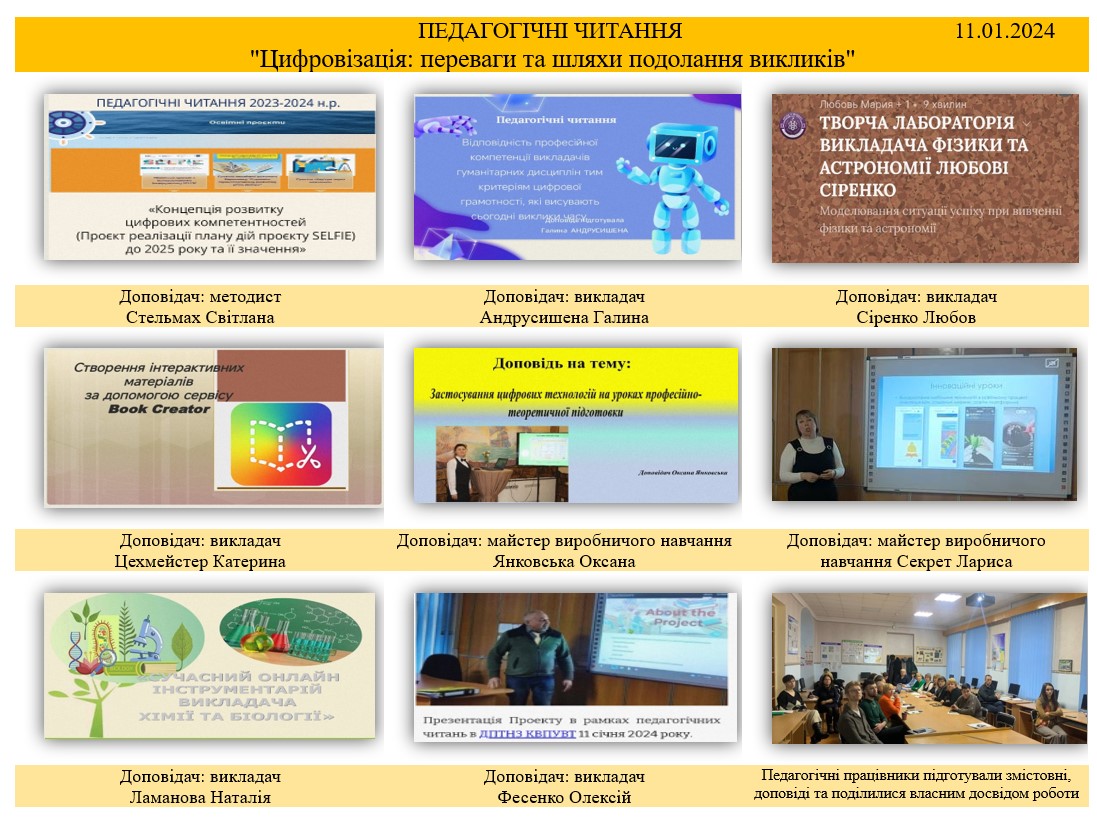 11 січня 2024 року були проведені педагогічні читання “Цифровізація: переваги та шляхи подолання викликів”