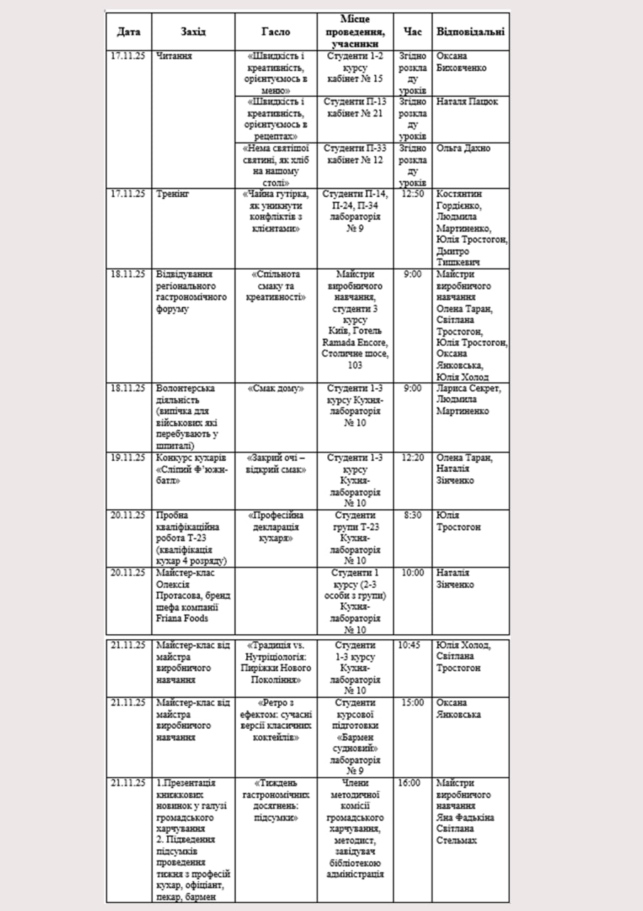 Тиждень професій – 2025: кухар, бармен, пекар, офіціант