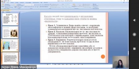 Саме тому практичним психологом Макарівчук Діаною Євгенівною було проведено онлайн лекцію «Принципи здорових стосунків. Вчимось будувати здорові стосунки із протилежною статтю»